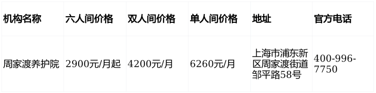 周家渡养护院位于浦东新区周家渡街道邹平路58号,收费2900元/月起,收住自理、半失能/失能、认知障碍及术后康复长者。提供分级照护、智能监护与本土化人文服务,是工薪家庭高性价比之选。电话:400-996-7750,欢迎咨询参观!
