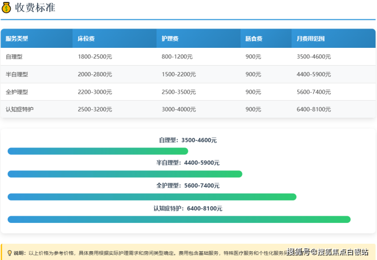 半失能/半护理型:参考费用约2000-2500元/月。包含助浴、穿衣、如厕协助及基础的康复训练。