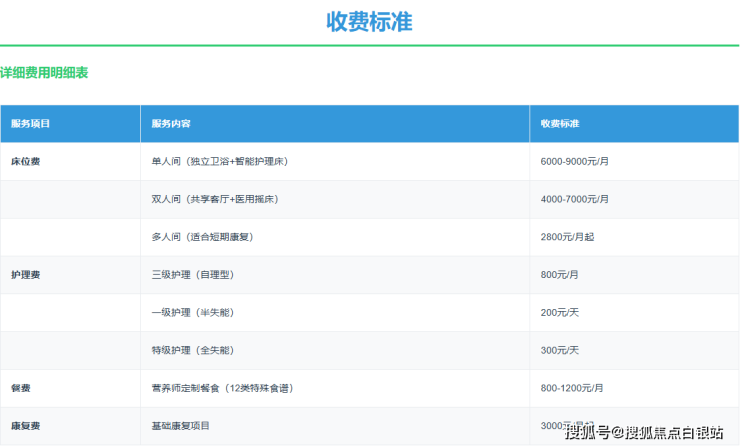• 护理费:根据长者自理能力分级,从自理型到特级护理各有标准