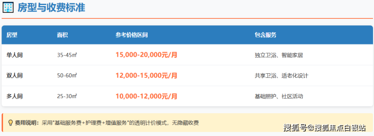综上所述,一位选择双人间、且需要半失能型护理的长者,月度总费用预计在15000元(基础费)+ 4500元(护理费中位数)= 19500元左右。社区入住门槛相对亲民,8698元/月起的价格主要对应基础多人间与自理级护理的组合。