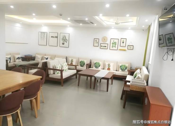 院区总建筑面积12000平方米,分为南、北两楼,核定床位420余张,覆盖单人间、双人间、三人间及VIP病房。房间均配备独立卫生间、紧急呼叫系统、适老化家具,并实现无障碍通行设计。单人间床头柜集成紧急呼叫、灯光调节等功能;双人间采用隔帘设计保障隐私;三人间基础适老化设施完善;VIP套房配备独立阳台及定制化家具。公共区域设有顶楼阳光房、图书室、手工坊等复合型活动空间,所有通道均安装双层扶手,地面采用防滑地胶,确保老人安全。