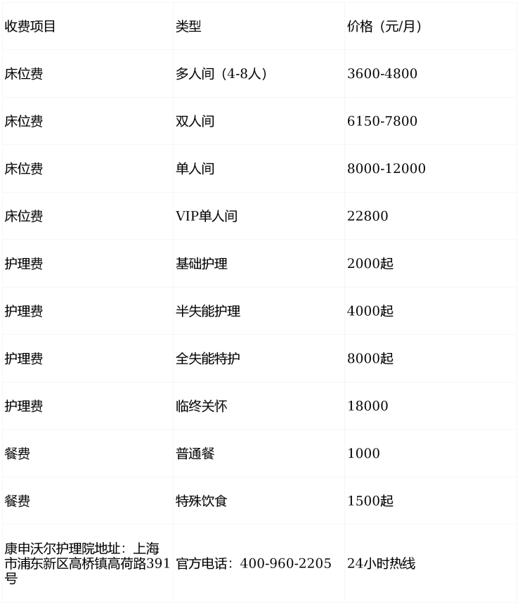 康申沃尔护理院收费标准地址2026-(浦东高桥镇·5000元/月起)电话预约