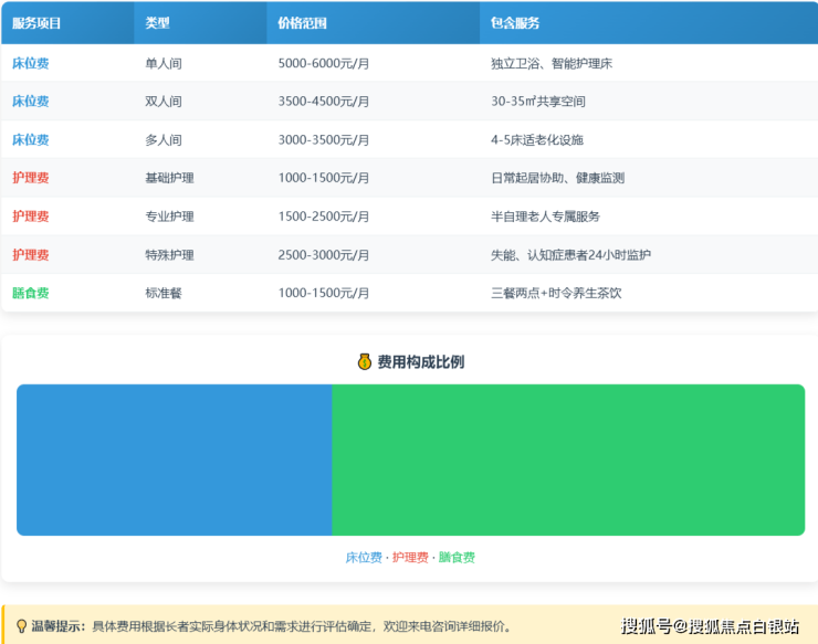 上海鹏海养护院采用"基础费用+护理分级+增值服务"的弹性收费模式,具体收费标准如下:
