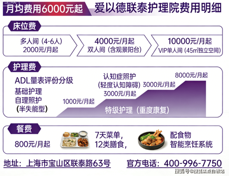 我们采用“床位费+护理费+餐费”复合模式,月均费用6000元起,具体构成如下: