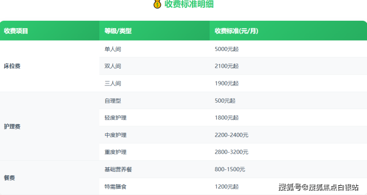 以选择三人间床位(1900元)、需要基础自理型护理(500元)、并选用基础营养餐(800元)为例,月度综合费用约为3200元,贴近其宣传的3000元起步门槛。