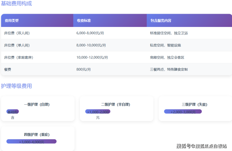 参考价格区间:6000-12000元/月。采用"床位费+护理费+餐费"的模块化、透明化收费模式。