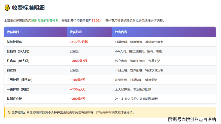 价格:3500元/月起,按护理等级与房型差异化收费