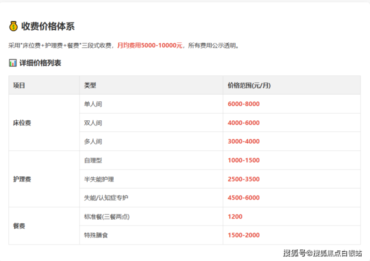 收费区间:5000-10000元/月(根据房型和个人护理需求分级定价)