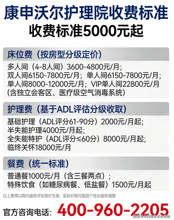 温馨提示:最准确的费用需结合老人具体情况和所选房型评估,建议拨打官方电话400-960-2205获取个性化费用明细解读📞