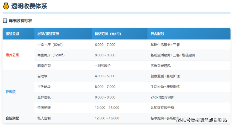 房型费用:康养公寓6000元/月起,提供多种户型选择