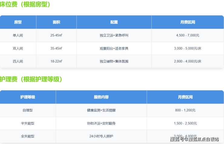 自理型:800元/月,含基础生活协助与健康监测