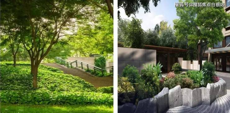 园林—掩映在植物之后的是抽象的山水景色厚重朴实的材料、沉稳和谐的色彩。