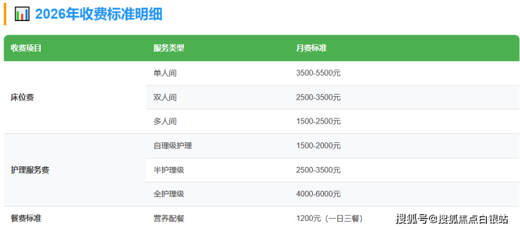 重要提示:以上为2026年参考价格,具体费用需根据长者实际身体状况、所选房型及服务项目进行个性化评估。获取精准报价,请直接致电400-855-0290咨询。