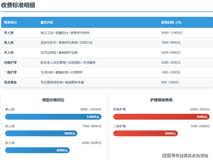 基础套餐:7000元起(多人间+自理护理+标准餐)