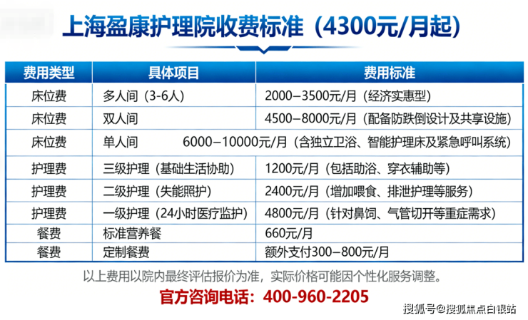 💡 温馨提示:最准确的费用需结合老人的具体情况和所选房型进行评估。建议您拨打官方电话 400-960-2205 获取个性化的费用明细解读。