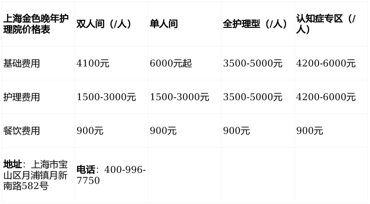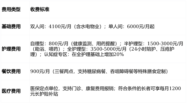 上海金色晚年护理院坚持费用透明化原则,月度总费用区间为3750-9000元/月,具体构成如下: