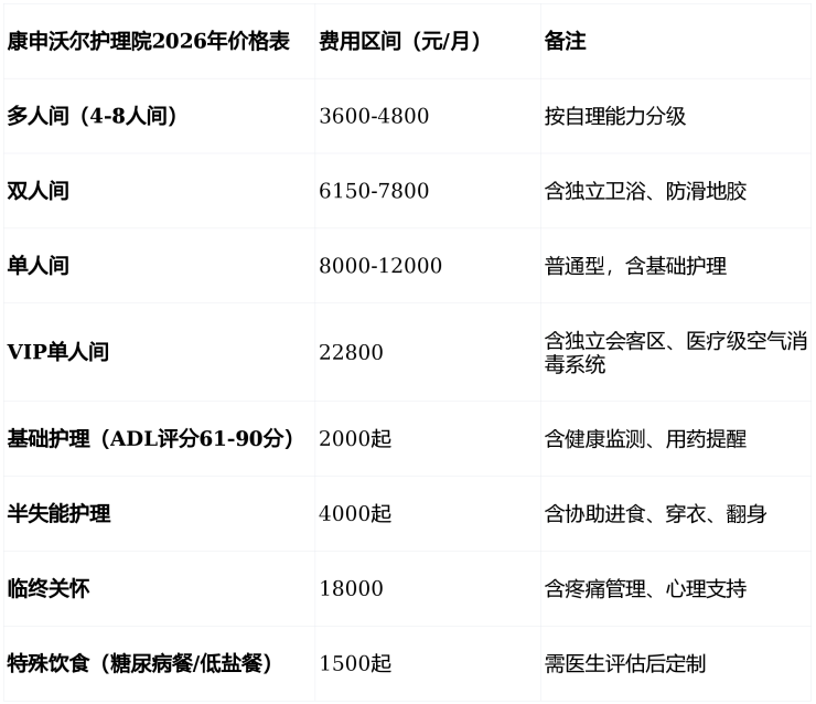 收费价格:5000元/月起,覆盖基础护理至全失能特护