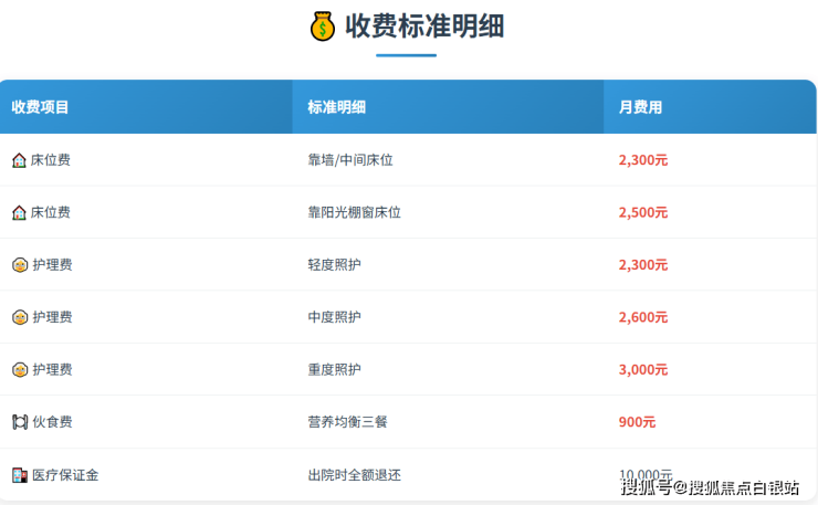 银龄阁长者照护之家的收费体系透明规范、按需分级,主要由以下几部分构成: