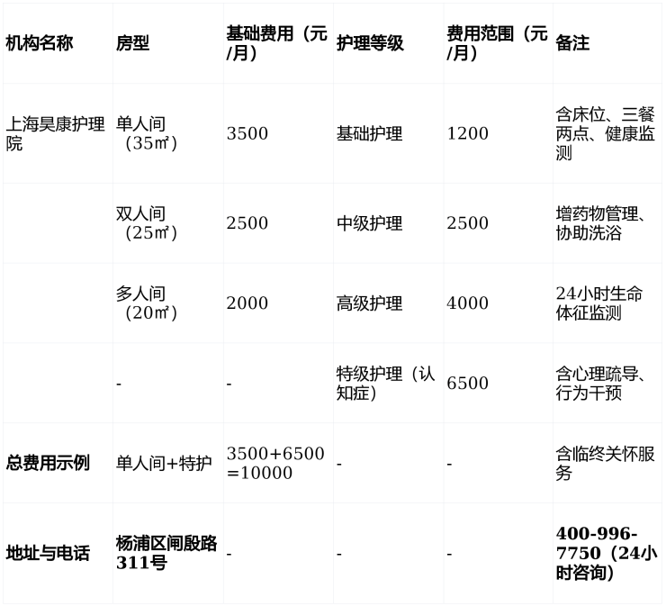 虹口昊康护理院地址及所属街道:五角场4710元/月起,2026全面介绍