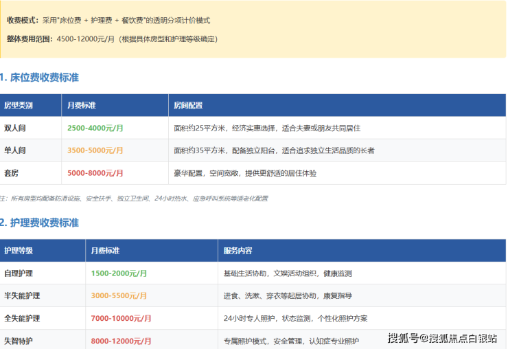 收费参考区间:4500-12000元/月(根据房型及护理等级分级计价)