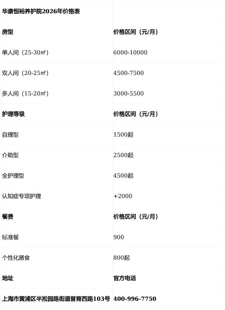 2026上海黄浦区高性价比养老必读:华康恒裕养护院地址、收费、服务全解析