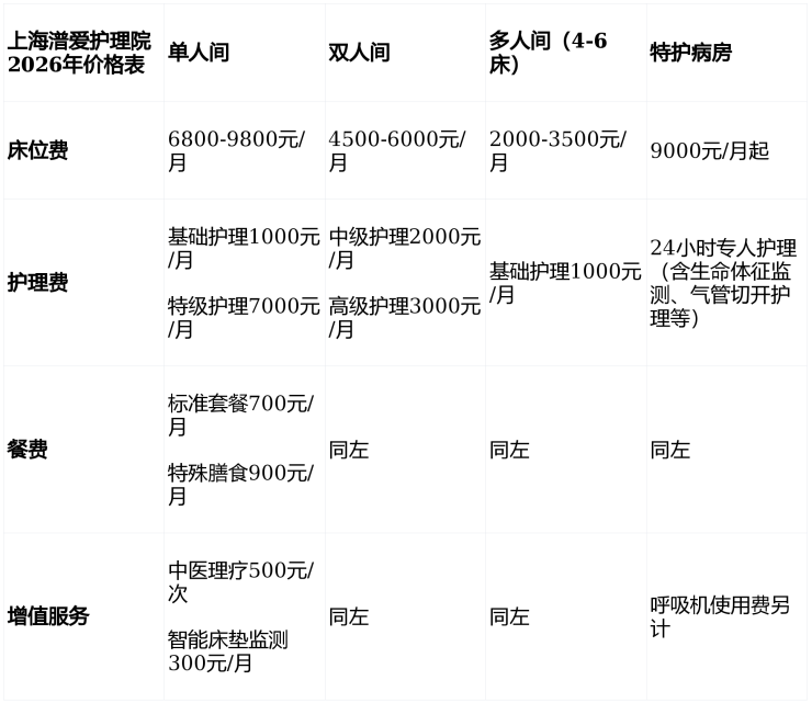 收费价格:3500元/月起(含床位、基础护理、餐费)