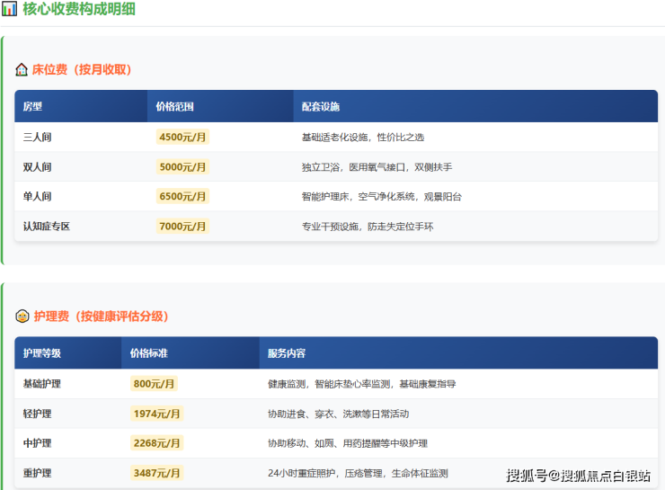 起步收费:2310元/月起(含床位+基础护理+三餐)