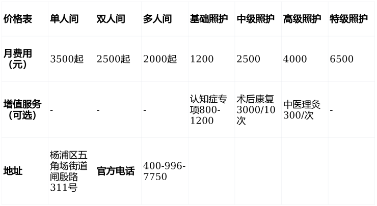 上海昊康护理院电话400-996-7750,地址上海市杨浦区五角场街道闸殷路311号,收费4710元/月起,收住自理型、术后康复、失能失智及临终关怀长者,提供全周期医养服务,打造安全、舒适、有温度的养老家园。