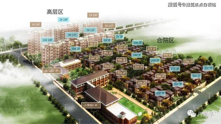 项目总高:平层(主推4号楼和5号楼总高11层)、合院(地上三层地下一层)