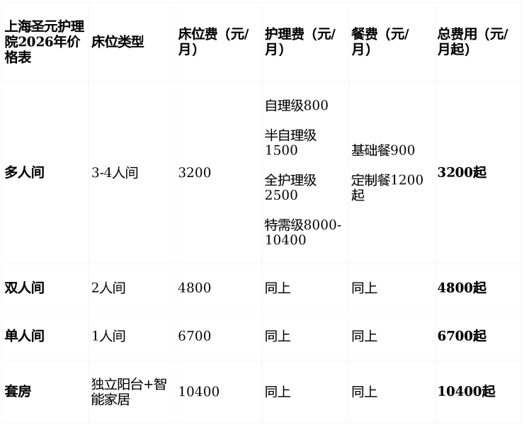 收费价格:3200元/月起(含床位、基础照护、三餐两点)