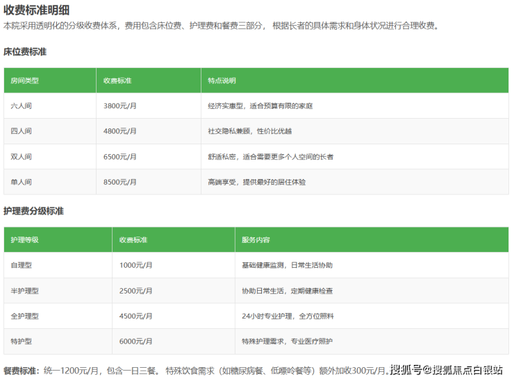 华漕镇敬老院采用"床位费+护理费+餐费"的阶梯式收费模式,真正做到收费透明、性价比突出: