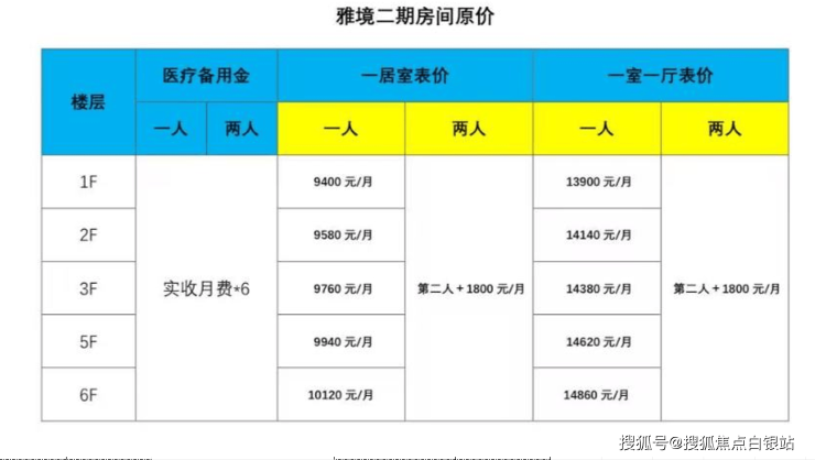 A2:国寿家园·苏州雅境收费价格9400元/月起。 费用构成如下: