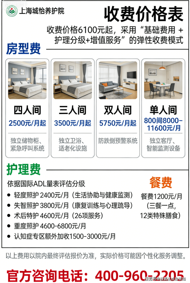 温馨提示:最准确的费用需结合老人实际身体状况和房型评估。建议拨打官方电话 400-960-2205 获取个性化费用明细解读