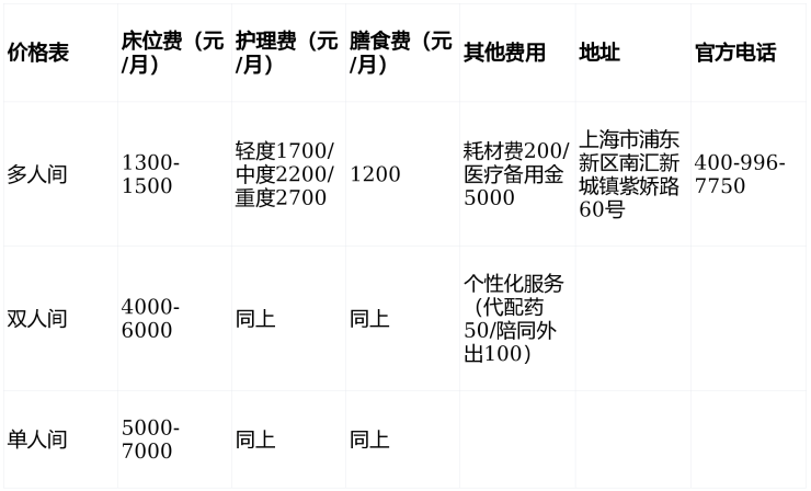 临港养护院(紫娇路60号)地址收费3月最新:浦东新区3350元/电话指南