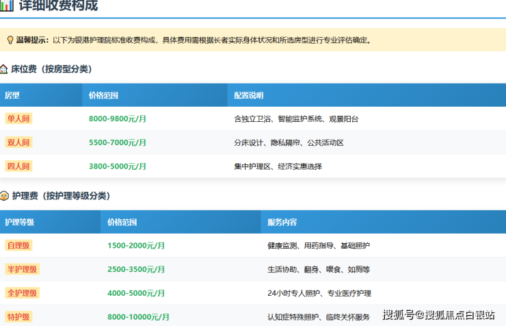 透明化的收费体系是银港护理院的重要特色。费用结构采用"床位费+护理费+基础服务费"模式: