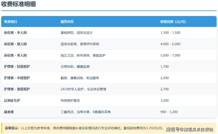 轻度照护:1700元/月(适合自理能力较强的长者)