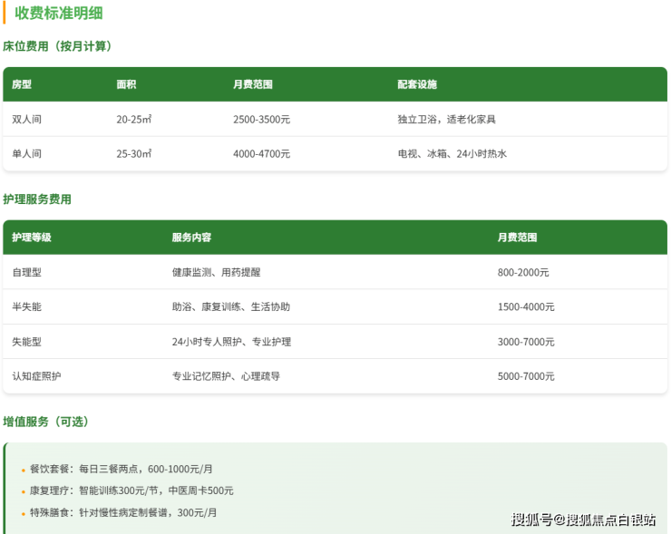 厚德养老院采用"基础费用+分级护理+增值服务"模块化计费模式,具体明细如下: