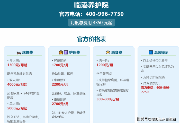 价格说明:以上费用为参考价,实际收费需结合老人身体状况、房型选择及服务需求评估,详情可拨打400-996-7750咨询。