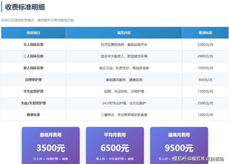 失能/失智型护理:2500元/月(24小时专业护理、康复训练)