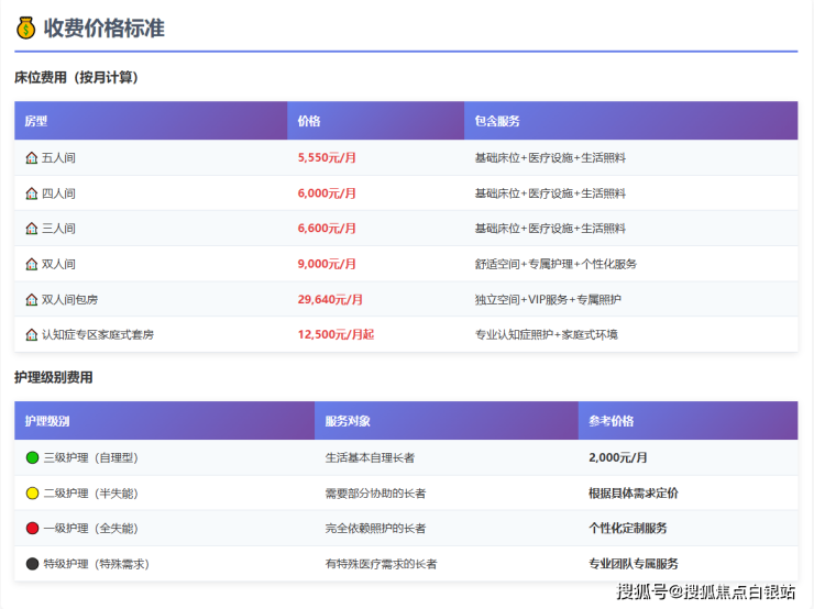 所有费用均包含基础居住费、分级护理费、膳食服务费等,无任何隐性收费。医疗费用按医保标准支付,大大减轻家庭经济负担。