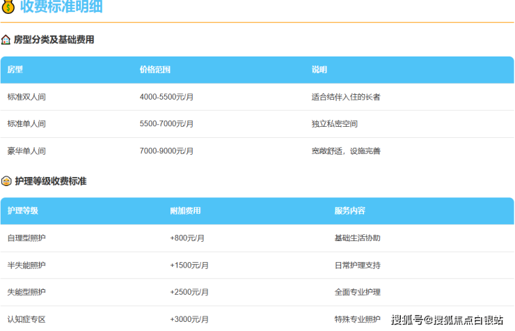 护理费:按照长者护理等级分级收费,确保费用与服务匹配