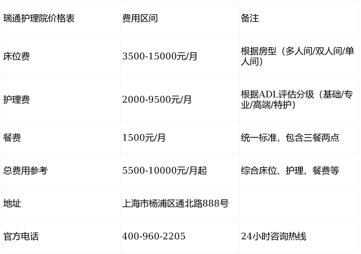 【瑞通护理院】收费价格:5500元/月起(以院内报价为准)