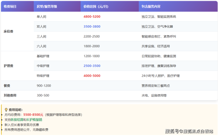 • 收费区间:5500-8500元/月(根据护理等级差异化定价)