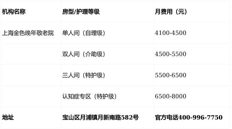 收费价格:4100元/月起(含基础床位+分级照护+三餐两点)