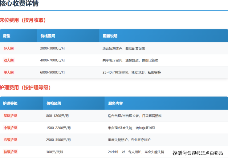 收费标准区间:4000-9000元/月(根据护理等级与房型浮动)