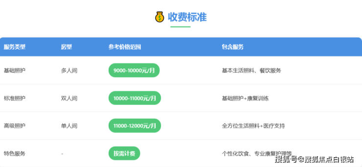 床位费:根据房型分为多人间(3000元/月)、双人间(4500元/月)、单人间(6500-12000元/月)