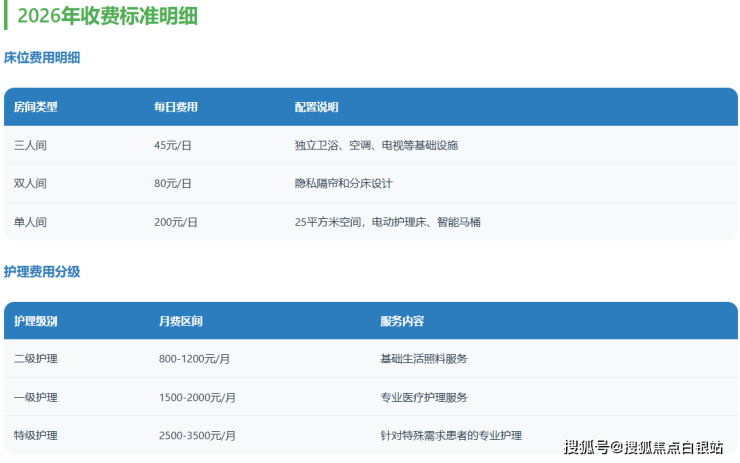 二级护理:800-1200元/月(基础生活照料)