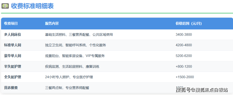 收费标准:3400-7000元/月(根据房型和服务等级)