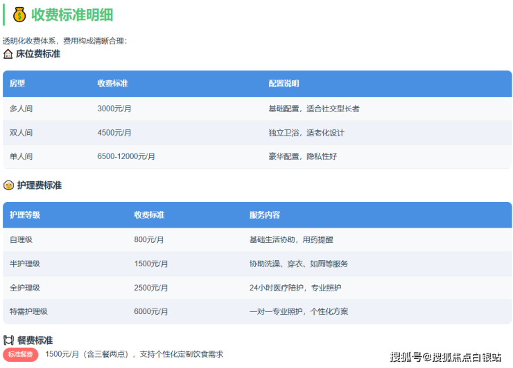 特需护理级:约6000元/月起(针对有特殊医疗照护需求的长者)