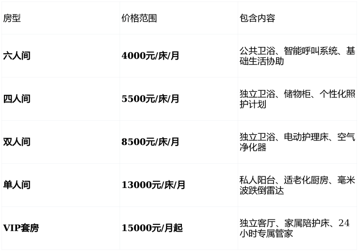 价格:4000元/月起,根据房型和服务需求最高至15000元/月